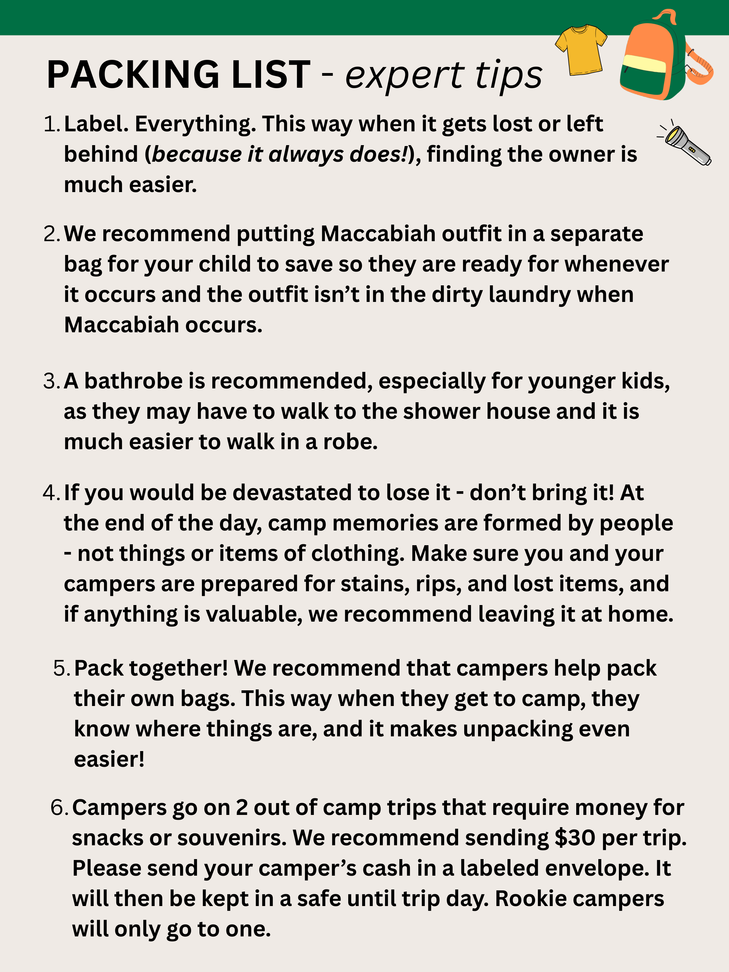 We greatly appreciate your support in managing expectations and fostering a positive community. Whether your child is new to camp or a returning camper, we are confident they will build incredible friendships and enjoy a memorable summer. Thank you for partnering with us to make this experience amazing for every camper!