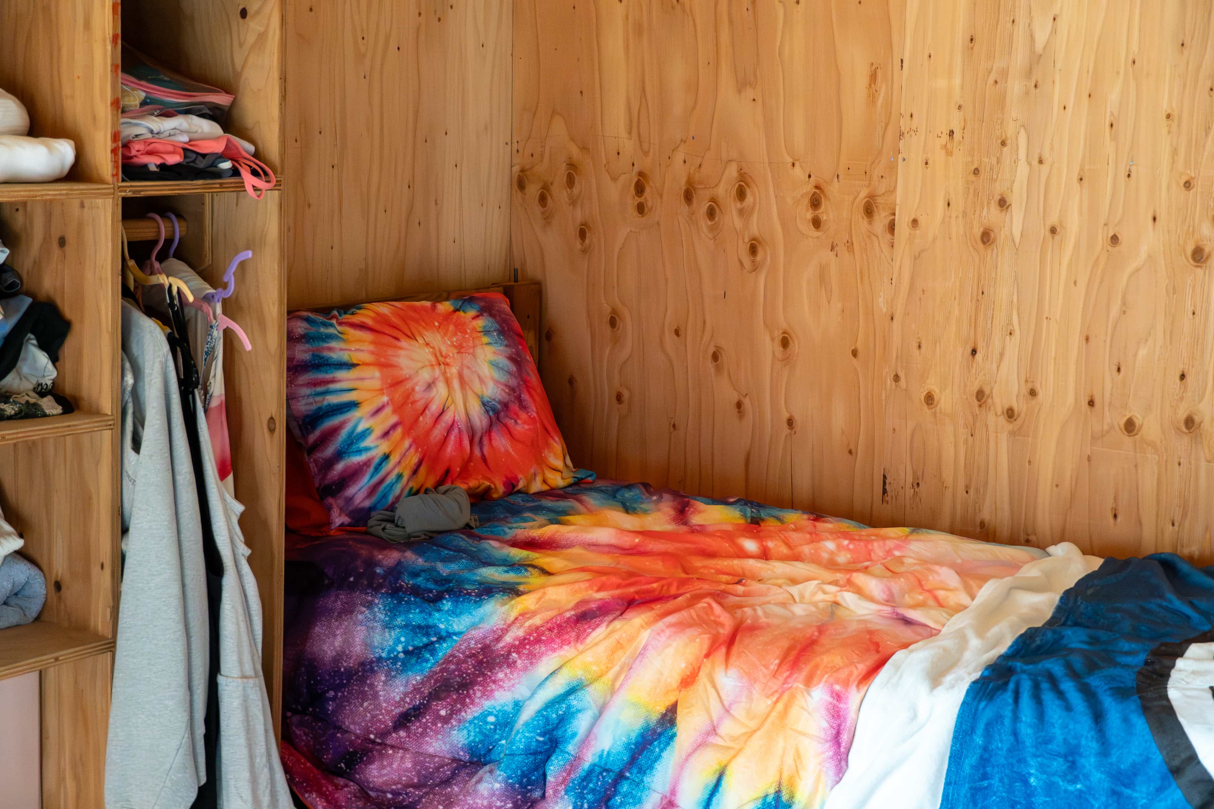 The beds at camp are wooden bunk beds and take standard twin sheets. Railings are attached for all top bunks. Each child gets their own “cubby,” with enough shelves and hanging space for everything on the packing list, plus some extra room for stuff that your child just can’t live without for the summer!